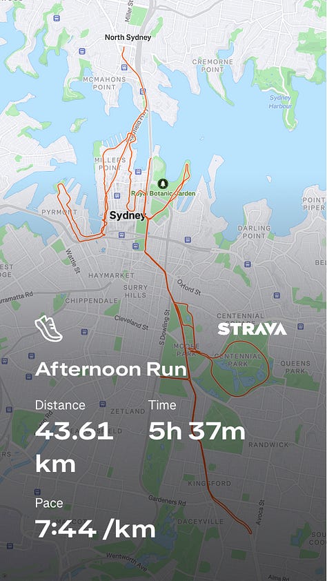 My WHOOP strain scores on long run days were on some days the highest of anyone in the Sydney group on WHOOP. A colleague screenshotted the leaderboard and called me insane.
