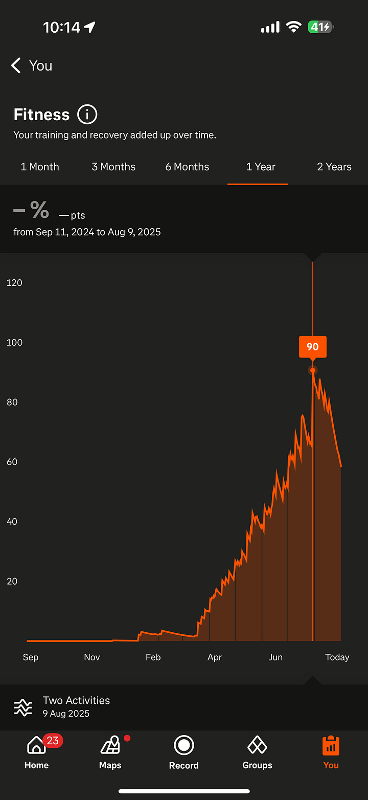 Since the marathon, I kept up the running at one to two sessions a week. I now have set my sights on optimising my blood markers, my bio age and getting as healthy as I can by the time I turn 40 in January.